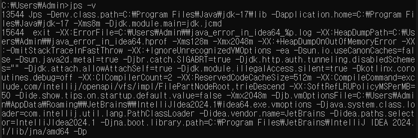 더 정확히 알기 위해서 jps -v를 해보자.